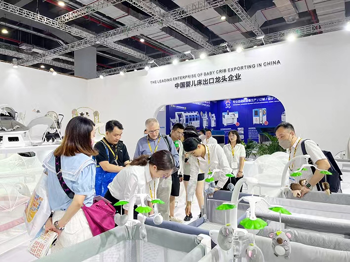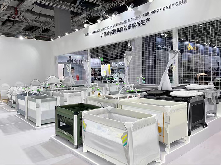 在CBME展會(huì)上,酷豆丁攜擁有獨(dú)家發(fā)明專利的一鍵開合式嬰兒床公開亮相,吸引了眾多采購(gòu)商駐足參觀、溝通交流。