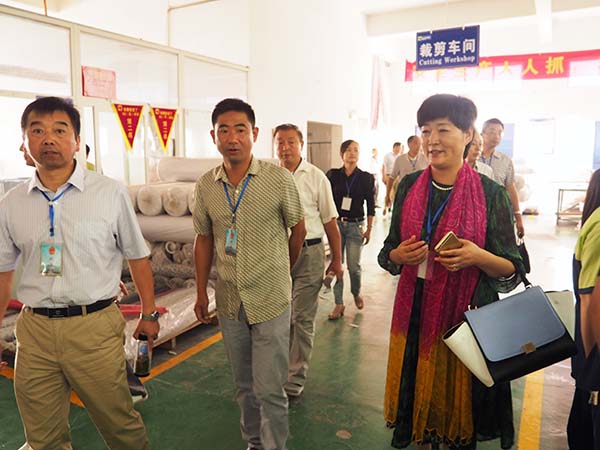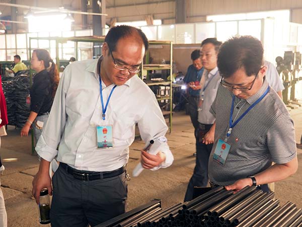 城北鄉(xiāng)黨委副書(shū)記徐旭、人大主任張安勝率駐該鄉(xiāng)的黨代表和省、市、區(qū)三級(jí)人大代表來(lái)酷豆丁視察。代表們?cè)诳岫苟」究偨?jīng)理張迎年的陪同下,依次參觀了各車間和產(chǎn)品樣品間。