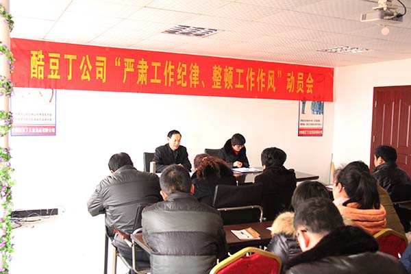 2月23日,安徽酷豆丁兒童用品有限公司召開“黨的群眾路線教育實踐活動”及專項治理動員會。班組長以上管理人員、各部門工作人員共70余人參加會議。董事長張迎年和副總經(jīng)理們出席會議。