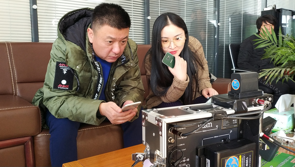 市場(chǎng)部總監(jiān)與導(dǎo)演現(xiàn)場(chǎng)閱片