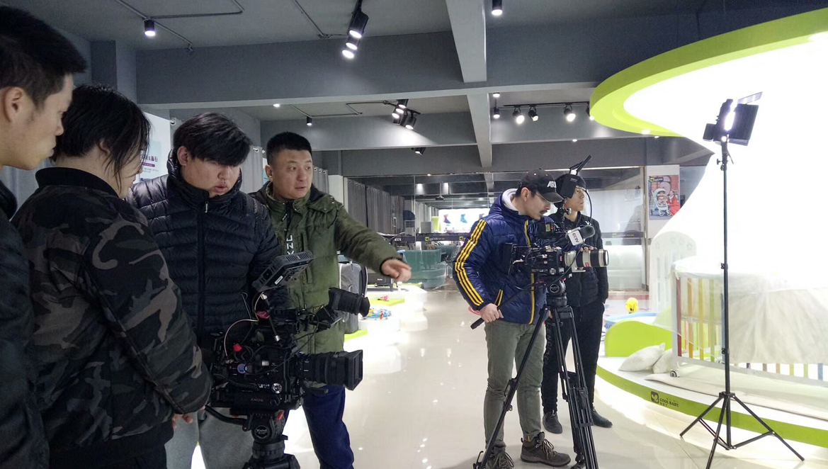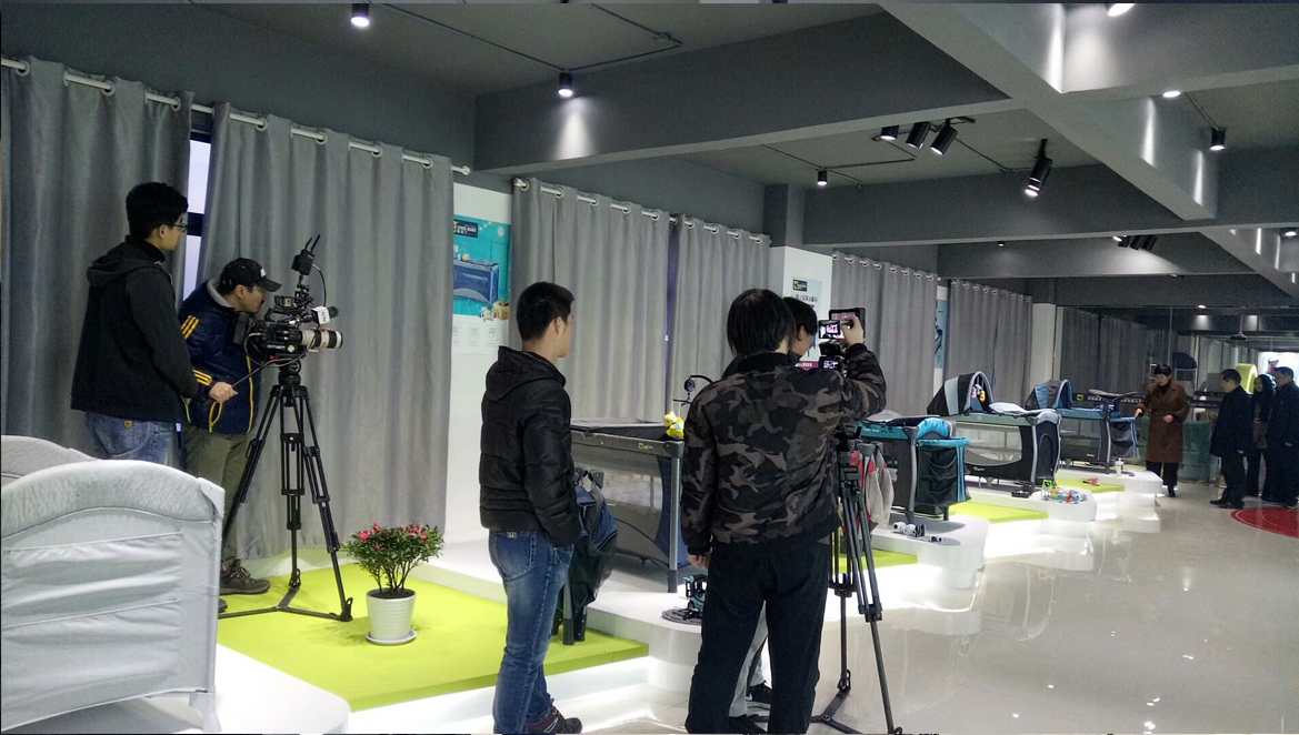 拍攝組在公司新產(chǎn)品展示廳實(shí)地取景