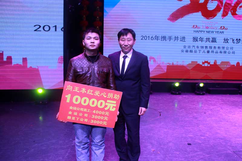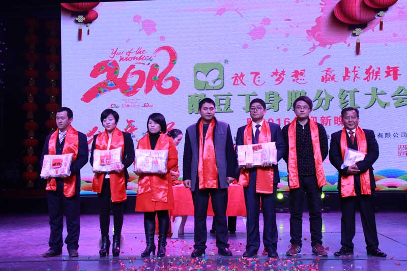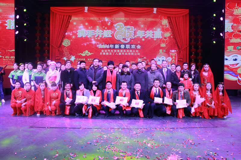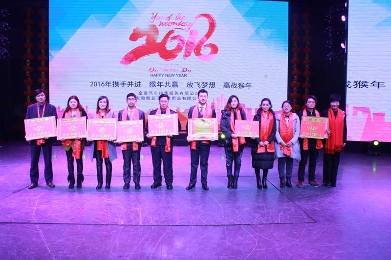 大會(huì)舉行了2015年身股分紅儀式,現(xiàn)場分的現(xiàn)金230萬元。分別表彰了33名先進(jìn)工作者,12名質(zhì)量標(biāo)兵、20名技術(shù)能手、5名優(yōu)秀干部、7個(gè)先進(jìn)單位。公司領(lǐng)導(dǎo)分別為獲獎(jiǎng)?wù)哳C發(fā)了獎(jiǎng)牌和獎(jiǎng)金。聯(lián)歡會(huì)上,領(lǐng)導(dǎo)和員工們同臺(tái)表演了舞蹈、獨(dú)唱、詩朗誦、小品、走秀、手語舞蹈等豐富多彩的文藝節(jié)目。在會(huì)場熱烈的氣氛中,公司還特別開展了誘人的抽獎(jiǎng)活動(dòng)。最后,區(qū)領(lǐng)導(dǎo)和公司領(lǐng)導(dǎo)上臺(tái)與所有演員合影留念。
