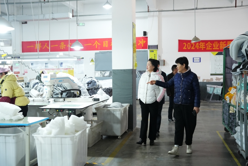 調(diào)研過程中,于軍深入了解酷豆丁的經(jīng)營現(xiàn)狀,聚焦企業(yè)發(fā)展中遇到的困難,同時(shí)積極宣導(dǎo)相關(guān)政策,為企業(yè)排憂解難。于軍在董事長張迎年的陪同下,首先來到酷豆丁樣品間,細(xì)致考察公司產(chǎn)品,詳細(xì)詢問2024年酷豆丁的銷售情況。隨后,一行人前往縫紉車間,實(shí)地考察生產(chǎn)狀況,了解生產(chǎn)流程、設(shè)備運(yùn)行以及人員工作情況。