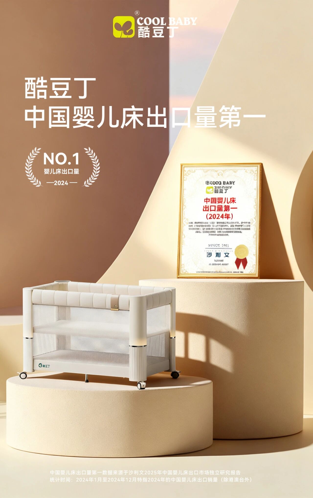 在全球母嬰消費(fèi)升級浪潮下,消費(fèi)者對產(chǎn)品的安全性、功能性與設(shè)計美學(xué)需求持續(xù)攀升,驅(qū)使母嬰行業(yè)向智能化、環(huán)?;⒏吒郊又捣较蚣铀侔l(fā)展。在此背景下,2025年,全球權(quán)威行業(yè)研究與咨詢機(jī)構(gòu)弗若斯特沙利文(Frost & Sullivan,以下簡稱“沙利文”)發(fā)布最新調(diào)研成果,基于對中國內(nèi)地(不包含港澳臺地區(qū))嬰兒床市場的研究,宣布安徽酷豆丁科技發(fā)展股份有限公司榮獲“2024年中國嬰兒床出口量第一”企業(yè)的市場地位聲明。