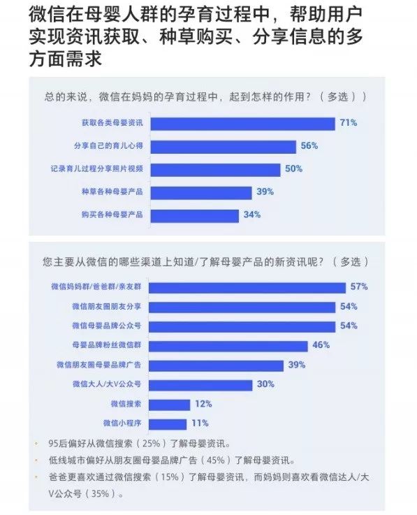· 95后偏好從微信搜索(25%)了解母嬰資訊。