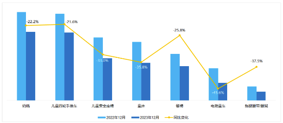 12月天貓平臺(tái)嬰童用品主要品類銷售額及同比