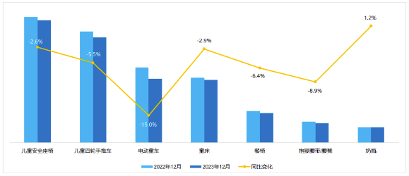 12月天貓平臺(tái)嬰童用品主要品類均價(jià)及同比