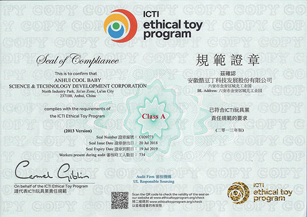 人權(quán)驗廠通過證書