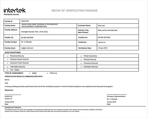 沃爾瑪質(zhì)量驗廠報告